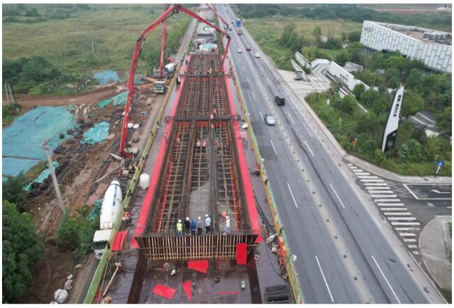 G312合六路(肥西段)首聯(lián)澆筑箱梁位于項目通航大道上跨節(jié)點右幅第一聯(lián),為單箱三室截面,橋跨組合3×30m,混凝土總方量950方,本次底腹板澆筑500余方。為保證首聯(lián)箱梁的順利澆筑,作業(yè)前項目部嚴格按照技術批復方案進行交底,同時對模板支撐體系、原材質(zhì)量、原材貯備、人力投入等情況進行全面檢查,有效保障了箱梁順利澆筑。據(jù)悉,項目部計劃節(jié)前完成首聯(lián)箱梁頂板澆筑施工。(史常奇)